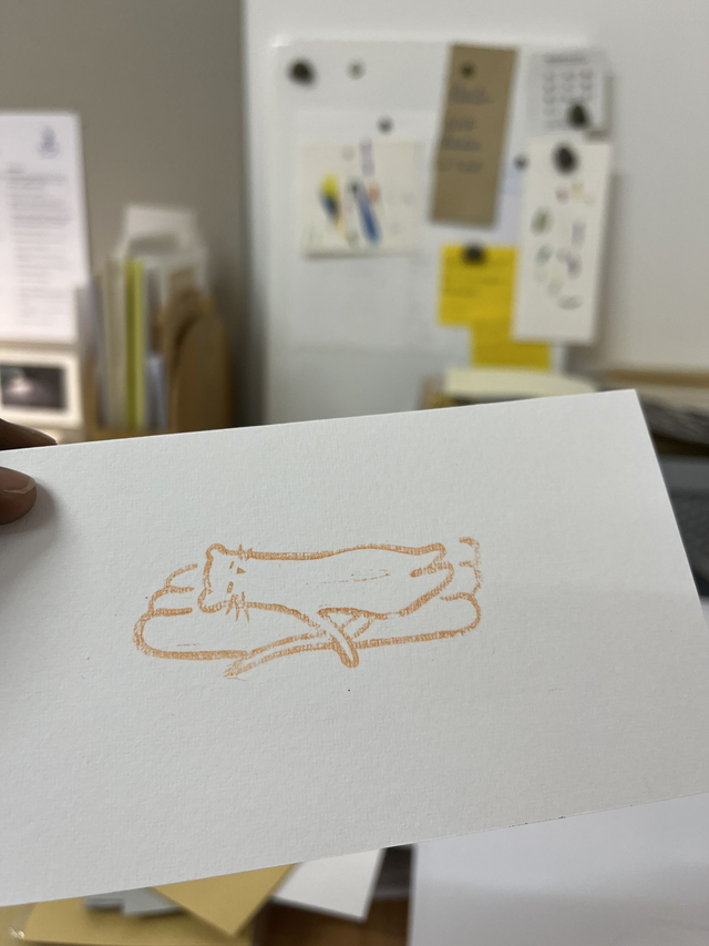 Chaque carte cadeau est nominative et marquée au tampon sec de l'atelier et la première face est estampillé en couleur d'un tampon original . Le tout est présenté sous enveloppe