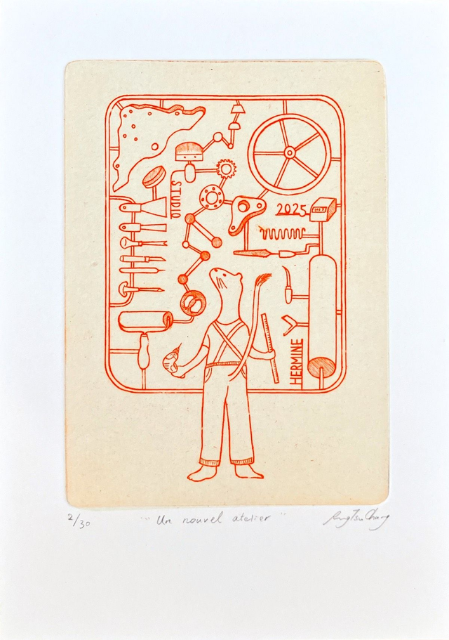 Gravure qui célèbre l'ouverture de notre nouvel atelier en 2025 !